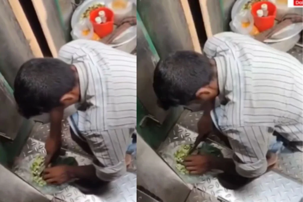 Viral Video: ट्रेने के अंदर और रेलवे स्टेशन के बाहर मिलने वाले भोजन पर अकसर लोग सवाल उठाते हैं। लेकिन यकीन मानिए इस वीडियो को देख आपका विश्वास पूरी तरह से खत्म हो जाएगा। क्योंकि इसमें एक वेंडर टॉयलेट के फर्श के नजदीक सब्जी की कटिंग कर रहा है। वो ये काम बिना किसी खौफ के कर रहा है। वीडियो में दिख रहा व्यक्ति झालमुड़ी बेचने वाला लग रहा है। जिस जगह पर लोग पैर रखने से घिन करते हैं वहां पर ये सब्जी काट रहा है। ये घटना मन को खराब करने वाली है। इस घटना को किसी यात्री के द्वारा रिकॉर्ड किया गया है। जिसे देख लोगों ने हेल्थ पर सवाल खड़े करना शुरु कर दिए हैं।