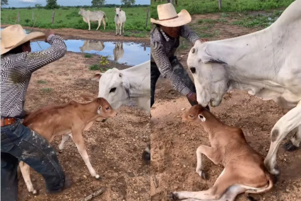 इनमें से एक गाय के छोटे से बच्चे को एक आदमी पकड़ने की कोशिश कर रहा है। इस दौरान गाय को काफी गुस्सा आ जाता है और वह इस आदमी से सीधे भीड़ जाती है। ये आदमी जैसे-जैसे गौ माता और उनके बछड़े के करीब आ रहा है वो गुस्से में आकर आदमी पर हमला कर रही हैं। गाय कुछ भी करके अपने बछड़े को नुकसान पहुंचाने नहीं देना चाहती हैं। यही वजह है कि, वह आदमी पर काल बनकर टूट पड़ती है। काफी देर तक गाय अपने बच्चे को बचाने के लिए आदमी से भिड़ती रहती है और अंत में ये करने में कामयाब भी हो जाती है।