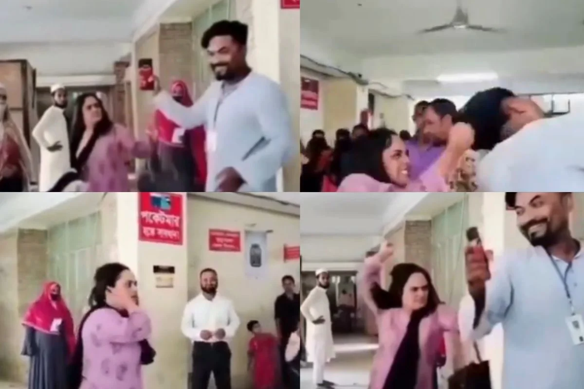 Viral Video: आजकल लोगों के अंदर सहनशक्ति तेजी से कम होती जा रही है और गुस्सा तो ऐसा आता है कि कब कहां किसपर निकल जाए कुछ कहा नहीं जा सकता। आए दिन ऐसे Video वायरल होते रहते है जिसमें लोग छोटी छोटी बातों पर बिफर उठते है और भरी भीड़ के बीच एक दूसरे पर हमलावर हो जाते है। हाल ही में एक वीडियो सोशल मीडिया पर वायरल हो रहा है जिसमें एक महिला एक शख्स को दर्जनों लोगों के बीच मारती पीटती नजर आ रही है। ये मामला किसी अस्पताल का लग रहा है और दीवार पर लगे साइन बोर्ड के अनुसार बांग्लादेश का प्रतीत हो रहा है लेकिन Viral Video के जरिए इसकी कोई पुष्टि नहीं की गई है।