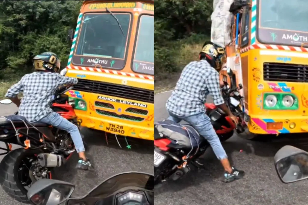 क्या हुआ जब ट्रक ड्राइवर ने जानबूझकर बाइक पर चढ़ाया ट्रक?