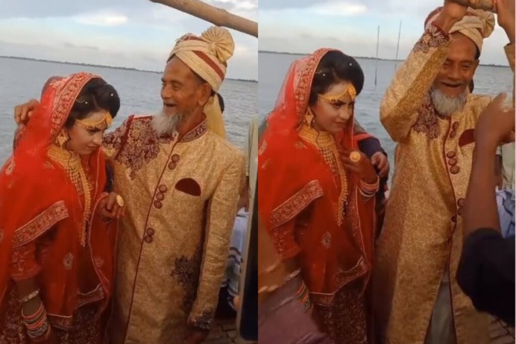 Viral Video: सोशल मीडिया पर आपने एक से बढ़कर एक दूल्हा और दुल्हन के वीडियो को वायरल होते हुए देखा होगा, लेकिन आज जो वीडियो हम आपके लिए लेकर आए हैं उसे देखने के बाद आप हंस-हंस कर अपना पेट पकड़ लेंगे और सोच में भी पड़ जाएंगे ऐसा कैसे हो गया है। सोशल मीडिया प्लेटफॉर्म इंस्टाग्राम पर एक वीडियो शेयर किया गया है। जिसमें देखा जा सकता है कि, करीब 70 से 80 साल का एक बुजुर्ग दूल्हे की शेरवानी में नाव की सवारी करते हुए नजर आ रहा है, नाव पर एक बहुत ही कम उम्र की लड़की है जो कि, दूल्हन के लिबास में दिख रही है।