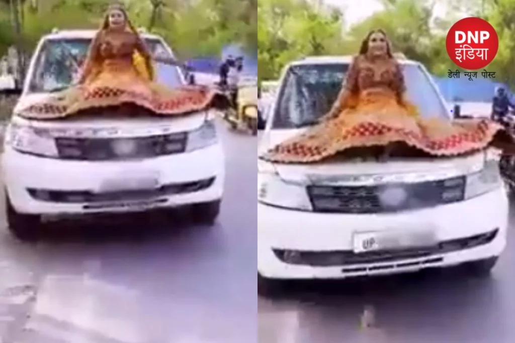 कार के बोनट पर रील्स बनाती नजर आयी दुल्हन