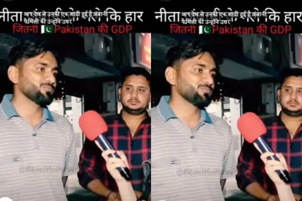 इंटरनेट पर इस वीडियो में एक आदमी माइक के सामने अंबानी के बेटे की रॉयल शादी की जमकर तारीफ कर रहा है। इसके साथ ही वह कह रहा है कि, पाकिस्तान की GDP नीता अंबानी के हार के बराबर है। इस दौरान वह भारत की जमकर तारीफ करते हुए नजर आ रहा है। इस वीडियो को देखने के बाद आपकी हंसी नहीं रुकेगी।