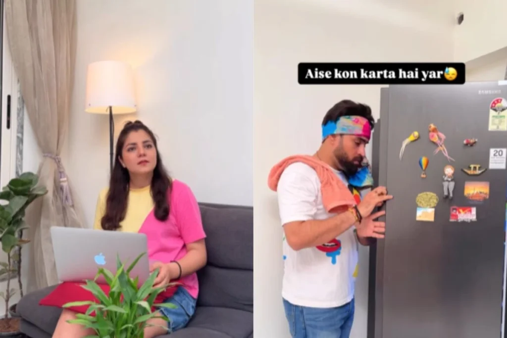 इस मजेदार Viral Video को restykamboj नाम के इंस्टाग्राम अकाउंट से शेयर किया गया है. वीडियो में देखा जा सकता है एक महिला अपने पति को बुलाती है और बोलती है कि फ्रिज का गेट खोलो आदमी खोल देता है.