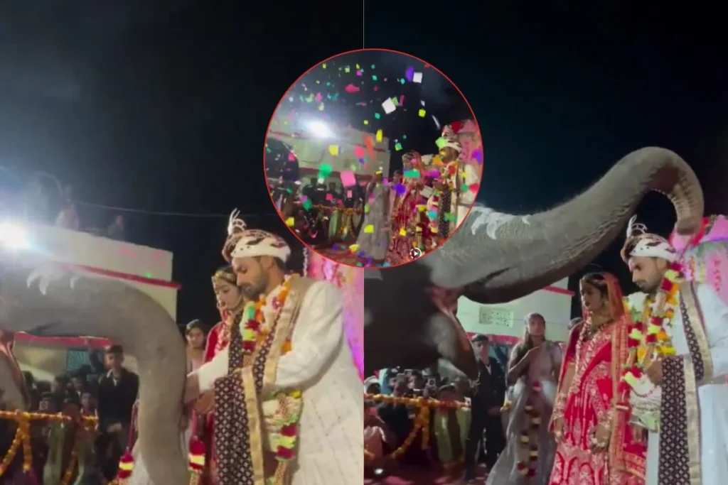 Viral Video में वरमाला के समय हाथी बना दुल्हा दुल्हन का साक्षी