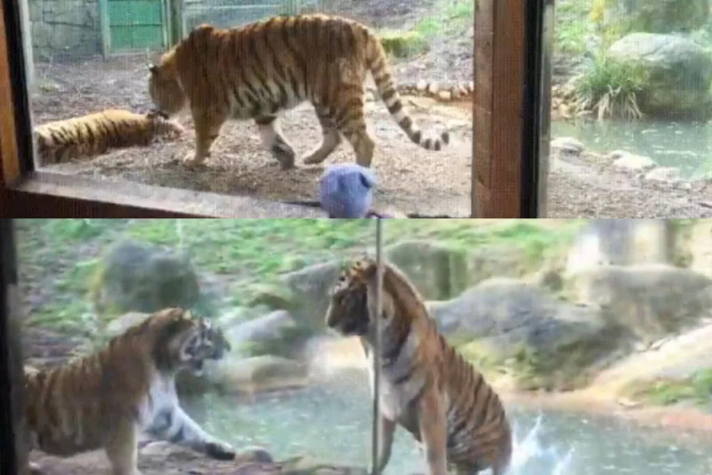 ये वीडियो किसी जू की तरह दिखने वाला बाड़े का लगता है। क्योंकि शीशे के अंदर से इसे रिकॉर्ड किया गया है। वीडियो में देखा जा सकता है कि, एक बाघ चेन की नींद सो रही बाघिन के पास पहुंच जाता है और उसे जगा देता है, जिसके बाद इस फीमेल जीव को गुस्सा आ जाता है। वह टाइगर पर हमला करते हुए आगे बढ़ती है और दांत दिखाते हुए अपना गुस्सा जाहिर करती है। बाघिन के इस गुस्से को देख बेचारा टाइगर उल्टे ही पैर दौड़ने लग जाता है। इसके बाद खौफ में पानी पीने लग जाता है।