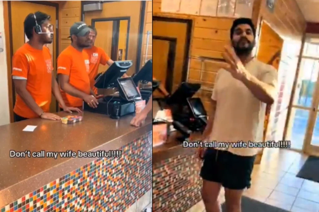 Viral Video: सोशल मीडिया पर एक कैफे के कमर्चारियों से लड़ते आदमी का वीडियो वायरल हो रहा है। ये आदमी सिर्फ इसलिए भड़का हुआ है , क्योंकि उसकी बीवी की खूबसूरती की उन लोगों ने तारीफ कर दी, जिसके बाद यहां विवाद खड़ा हो गया।