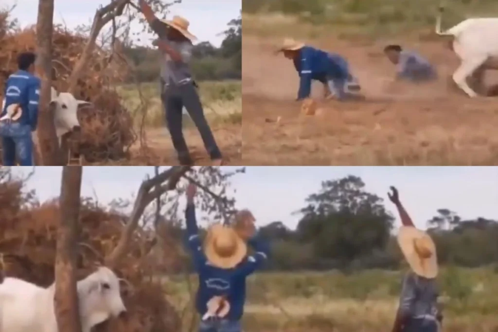 इस वीडियो में देखा जा सकता है कि, दो पेड़ों के बीच में बैल की गर्दन फंसी हुई है। इस दौरान वह खुद को काफी बचाने की कोशिश कर रहा है। लेकिन निकाल नहीं पा रहा है। तभी वहां पर मौजूद लड़के पेड़ की डाल को खींचते हुए बैल की फंसी गर्दन को निकालने की पूरी कोशिश करते हैं। Viral Video के अंत में वह बैल की जान बचाने में कामयाब हो जाते हैं। जैसे ही बैल बाहर निकलता है वैसे ही वह जान बचाने वाले आदमियों पर गुस्से से टूट पड़ता है और जमीन पर उन्हें गिरा देता है। इस दौरान दोनों जमीन पर गिर जाते हैं और उनको काफी चोट लग जाती है।