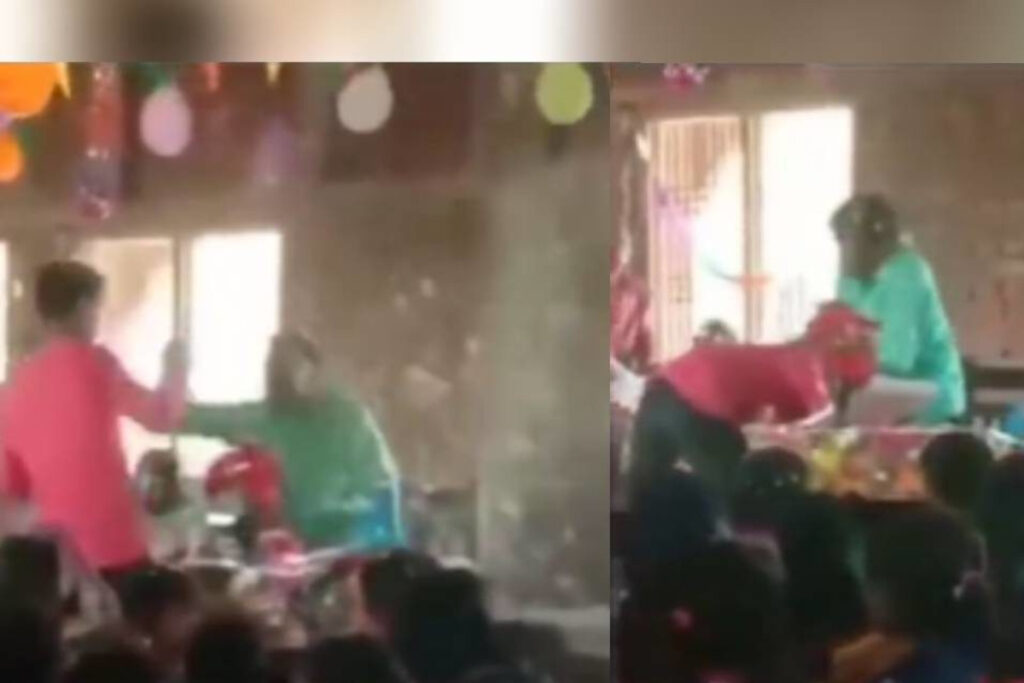 वीडियो में साफ दिख रहा है, कि शिक्षक दिवस के मौके पर स्कूल के एक क्लॉस में कार्यक्रम हो रहा था। तभी एक रेड शर्ट पहना हुआ लड़का अपने गुरु के चेहरे पर कुछ स्प्रे कर देता है। इतने में गुरु जी उसे पकड़कर हाथों से धुनाई करना शुरू कर देते हैं। यही वीडियो अब सोशल मीडिया पर तेज़ी से वायरल हो रहा है।