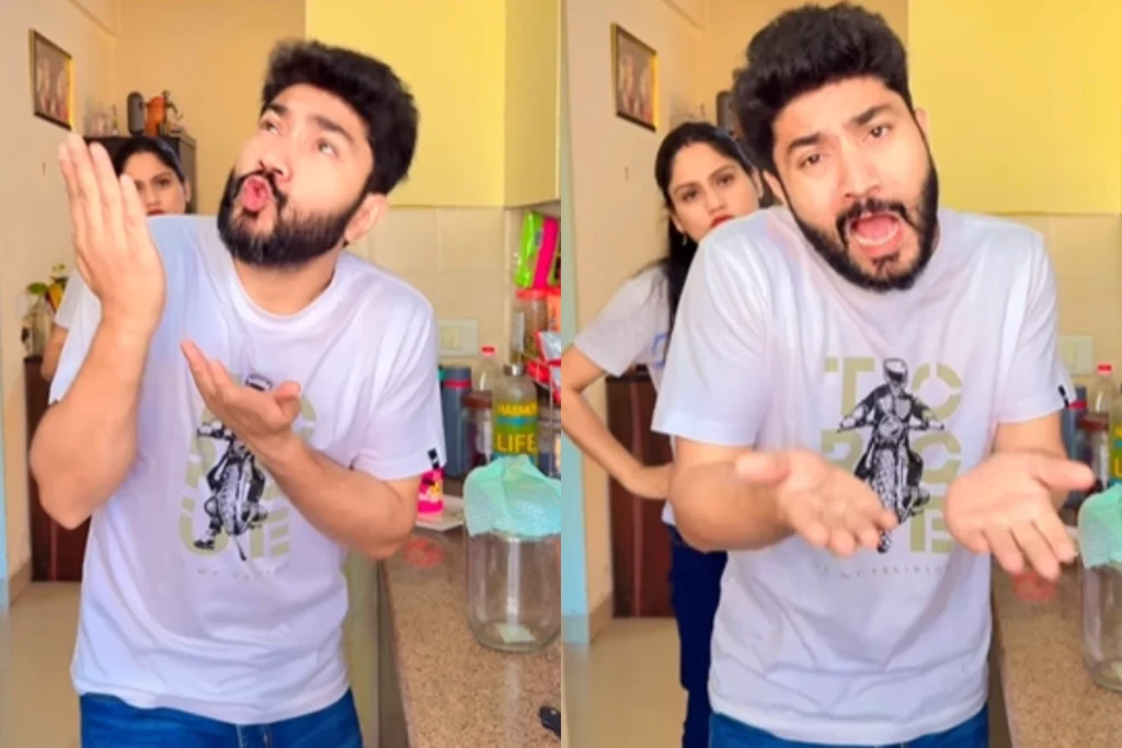 इस Viral Video को pahadijodi.official नाम के इंस्टाग्राम अकाउंट से शेयर किया गया है. वीडियो में देखा जा सकता है कि, पत्नी से परेशान यानी की पत्नी पीड़ित आदमी एक एंथम गा रहा है. वह अपनी बीवी को आंधी, तूफान के साथ-साथ बर्बादी बताते हुए तबाही बता रहा है और बोल रहा है कि, अगर बीवी नहीं होती तो आज उसका ब्राइट फ्यूचर होता. यह सब कुछ बोल ही रहा होता है कि, तभी पीछे से उसकी पत्नी आ जाती है. बीवी को जैसे ही आदमी देखता है वैसे ही उसकी हालत खराब हो जाती है. क्योंकि उसने सपने में भी नहीं सोचा था जिस बीवी की वह इतनी बार-बार की बुराई कर रहा है वह अपनी ही बुराई पीछे से सुन लेगी. इसके बाद तो यूजर्स ने कमेंट करके बोलना शुरू कर दिया “भाई अब तो तू गया पीछे देख मौत खड़ी है.”