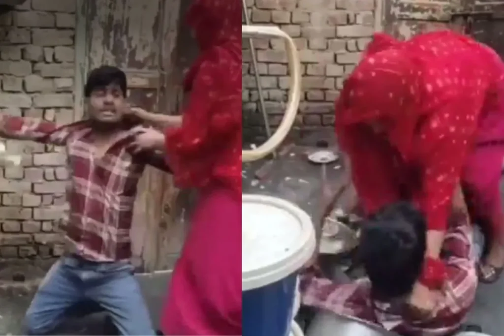 पति को बुरी तरह से पीटती पत्नी वायरल