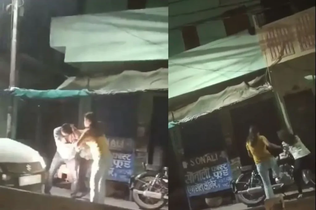 बीच रोड पर लड़के को पीटती हुई लड़कियां वायरल