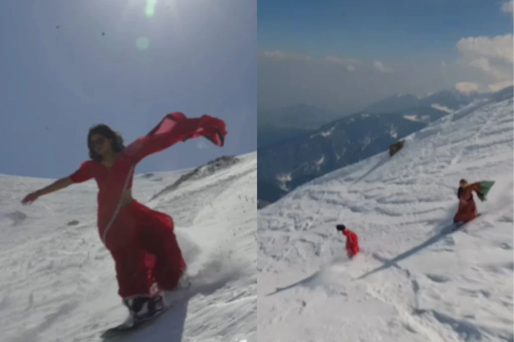 बर्फ की ऊंचाइयों में महिलाओं ने साड़ी पहनकर किया स्टंट