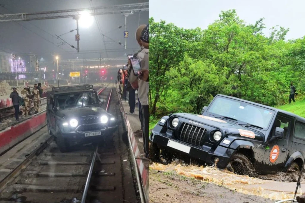 रेलवे ट्रैक पर दौड़ी महिन्द्र थार कार