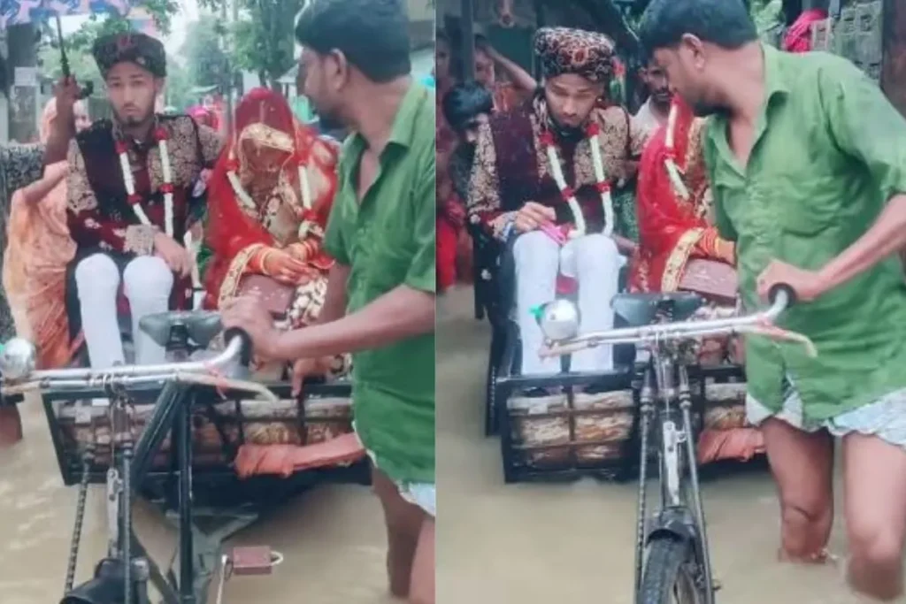 Viral Video: वाह क्या विदाई है! शादी के बाद दूल्हेराजा से नहीं हुआ सब्र, बाढ़ में ही दुल्हनिया को ले उड़ा, देखें वीडियो