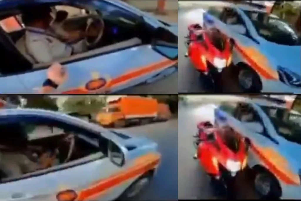 क्या हुआ जब पुलिस वालों को ही नियम कानून बताने लगा बाइक सवार?