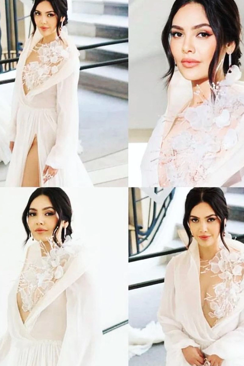 कान्स फिल्म फेस्टिवल के रेड कार्पेट पर ईशा गुप्ता ने थाई-हाई स्लिट सॉफ्ट व्हाइट गाउन पहना था।
