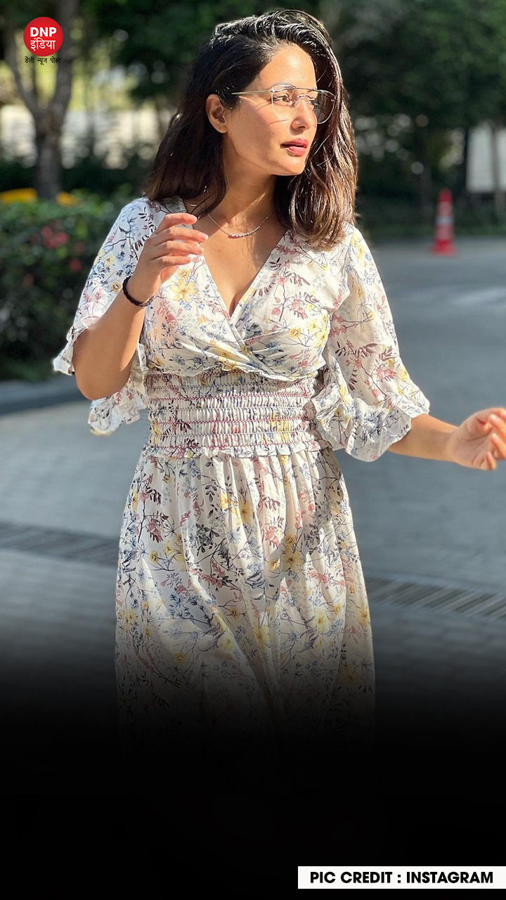 फोटोशूट के लिए हिना खान ने व्हाइट फ्लोरल प्रिंटेड शॉर्ट ड्रेस को चुना और एक से बढ़कर एक पोज़ दिए।