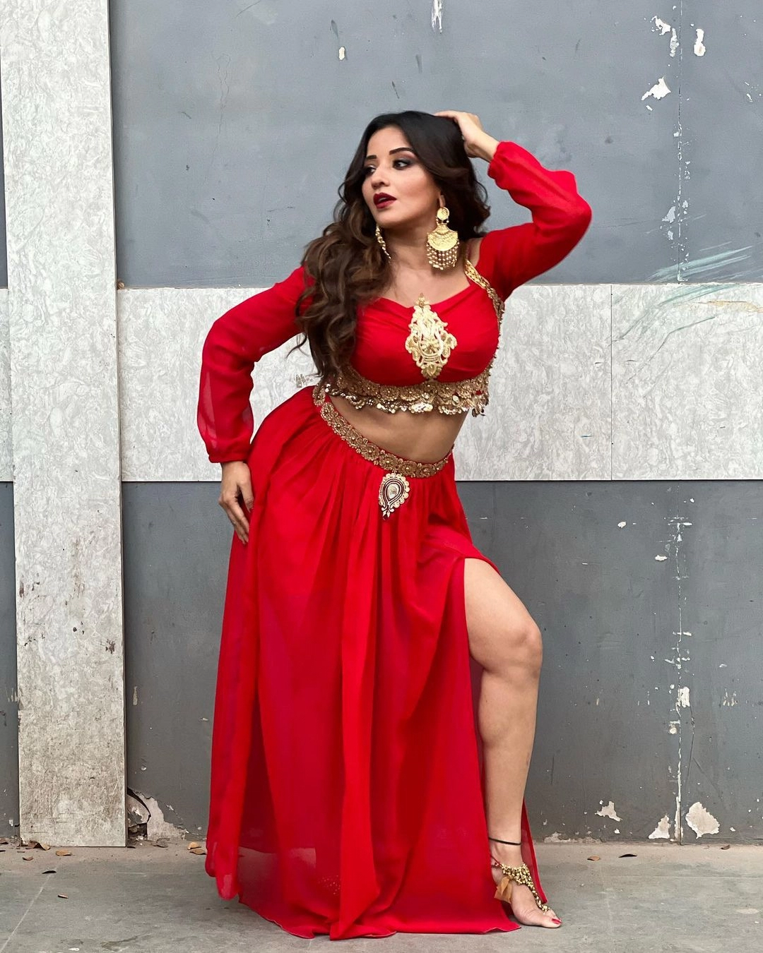 लाल ड्रेस में बेहद बोल्ड अवतार में नजर आईं मोनालिसा