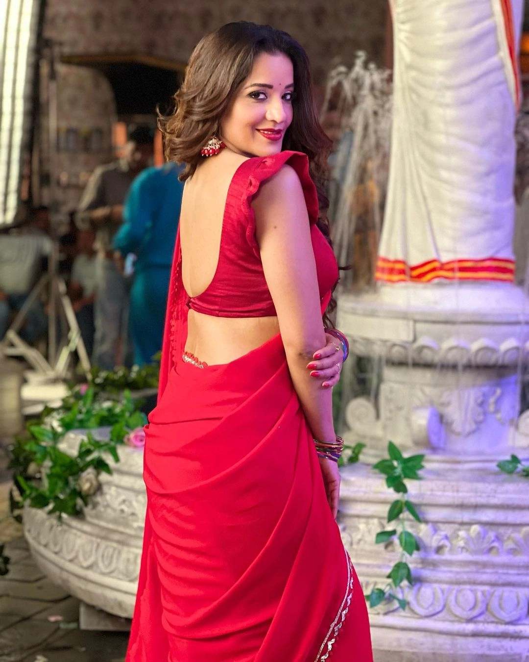 MONALISA PHOTOS: लाल साड़ी में बेहद बोल्ड लुक्स देती मोनालिसा ने लूट लिया फैंस का दिल, नजरें हटाना हुआ मुश्किल