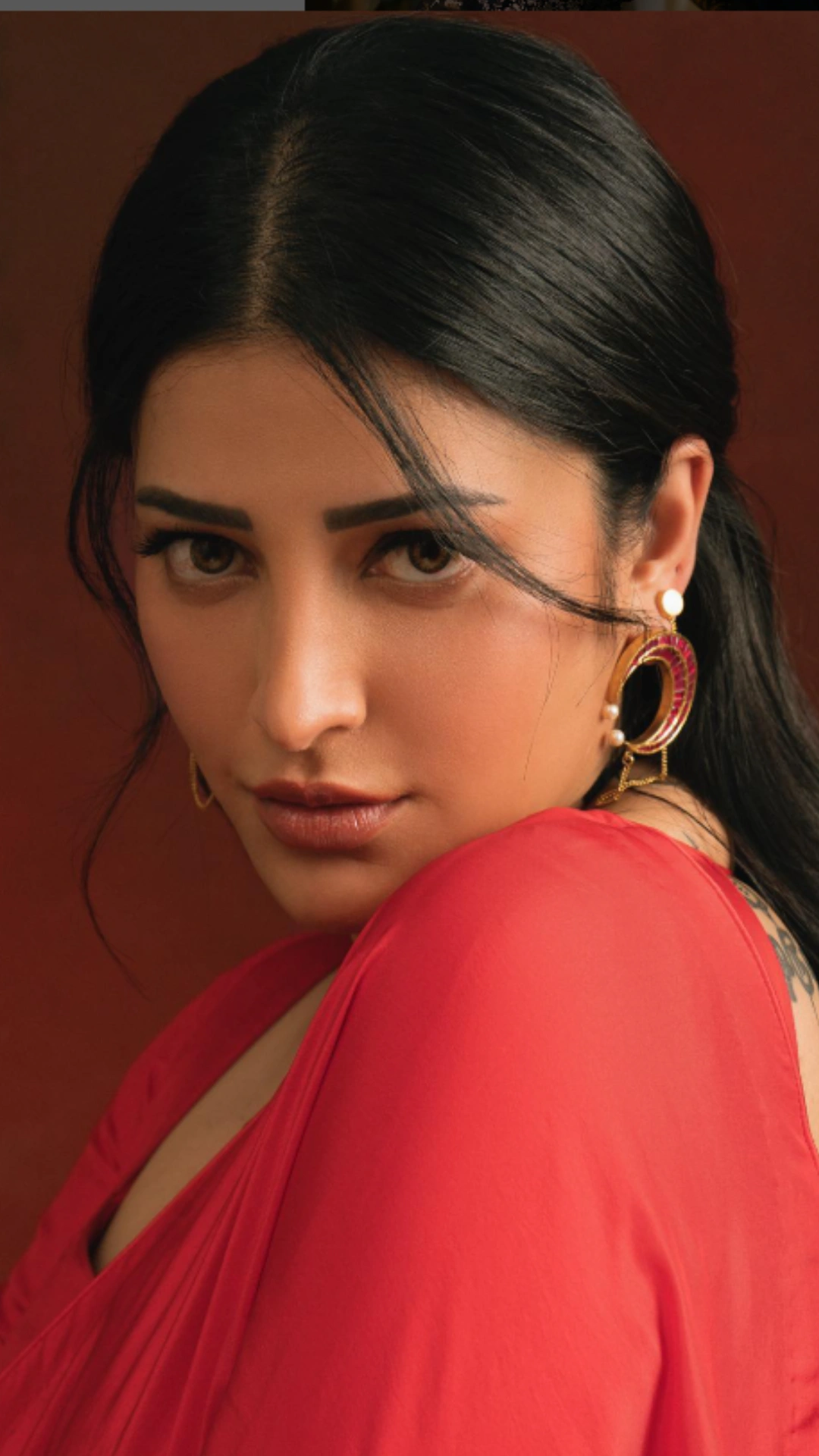 इस मरून रंग की साड़ी में श्रुति हासन तहलका मचा रही है।