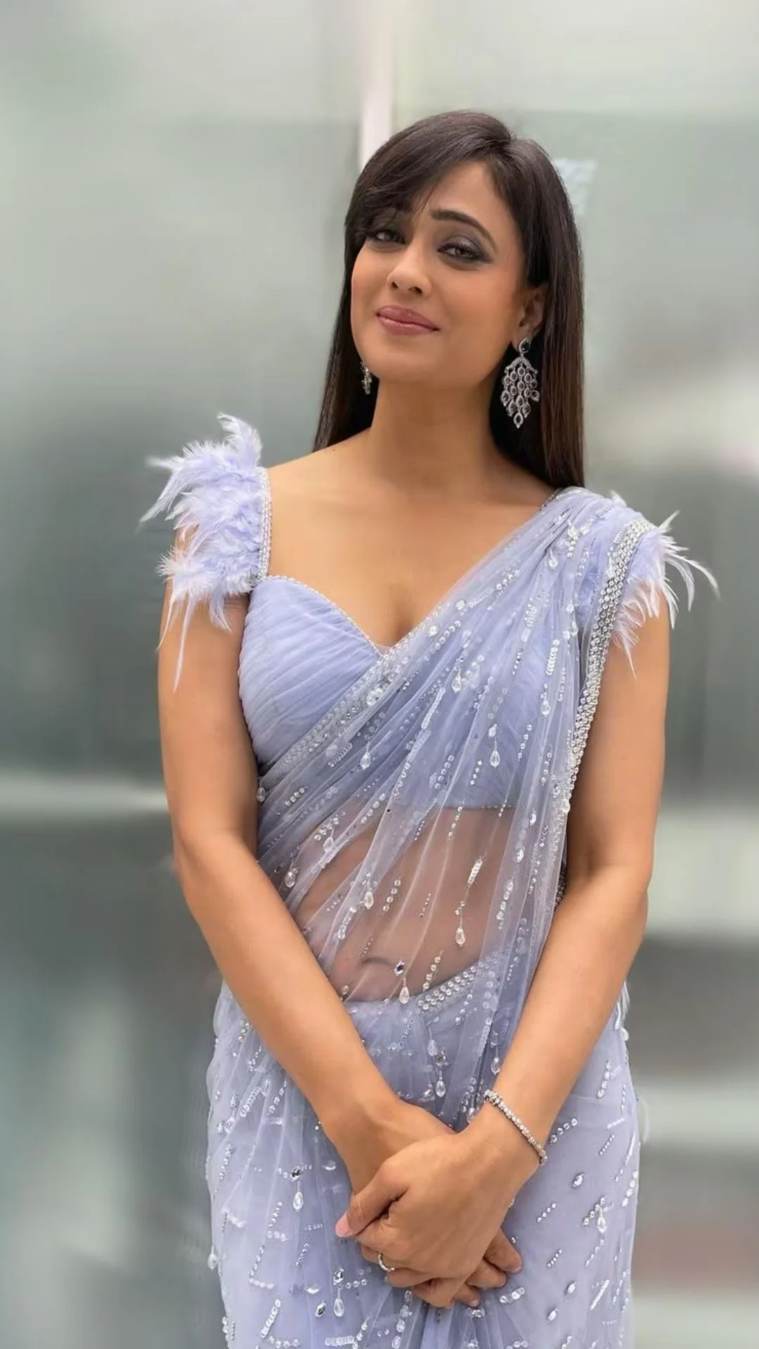 आने वाले फेस्टिव सीजन के लिए श्वेता तिवारी का यह ट्रांसपेरेंट फुल स्लीव ब्लाउज भी बेस्ट डिजाइन है।